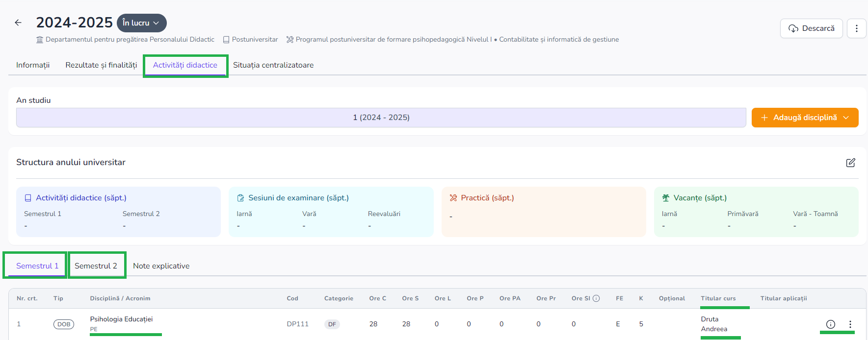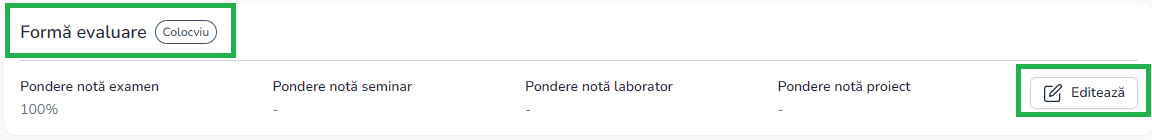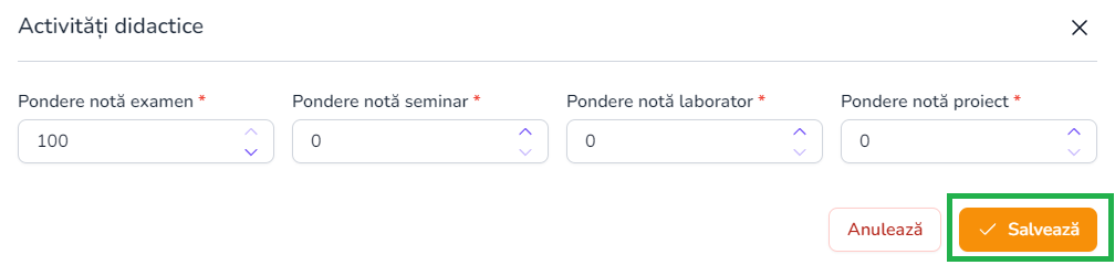 Doar titulatii de curs pot modifica ponderea disciplinei respective din butonul info